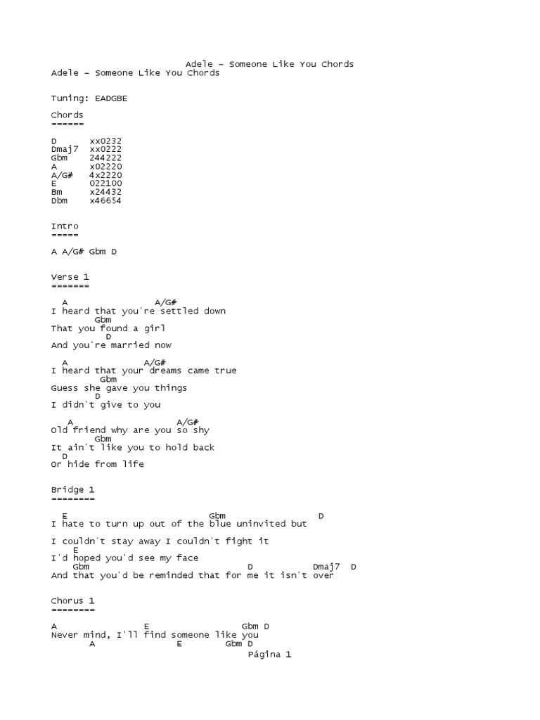 Someone Like You Guitar Chords Lyrics