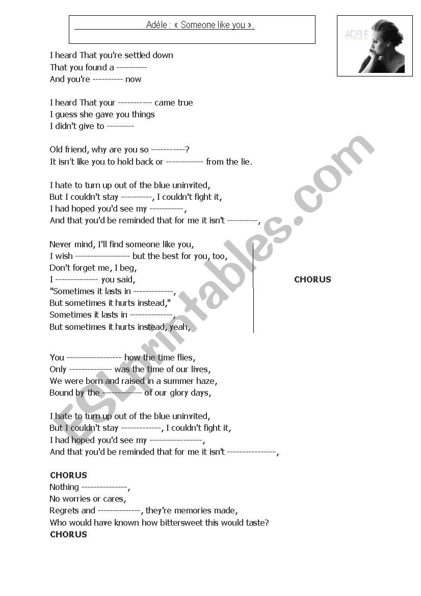 Someone Like You By Adele English Esl Worksheets